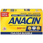 [SnS, AC] $3.84 | 300-Count Anacin Aspirin & Caffeine Fast Pain Relief at Amazon