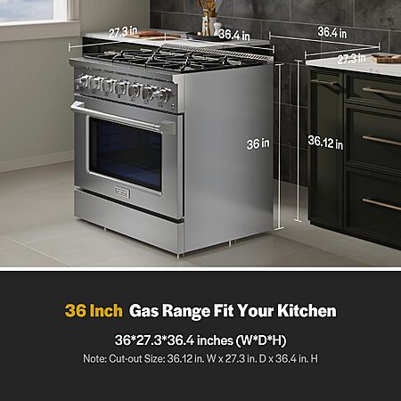 Empava 36" Professional Gas Range for Serious Home Cooking, 20,000 BTU High-Output Burner, True Convection Oven & Infrared Broiler $1,614.18 $1614.18