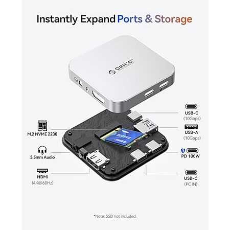 [AC] $33.59* | ORICO 6-in-1 10Gbps Magnetic M.2 NVMe USB-C SSD Enclosure (Silver) at Amazon