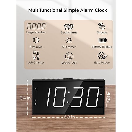 Alarm Clock 2 Alarms Loud LED Big Display Plug in Simple Basic Digital Clock with USB Port, Adjustable Volume, Dimmable, $12 FS PRIME AMZ