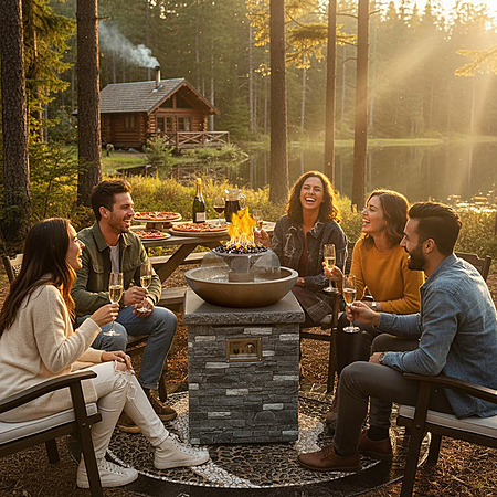 • Aquaflame pit blends fire and water to create warmth, relaxation, and the perfect outdoor vibe