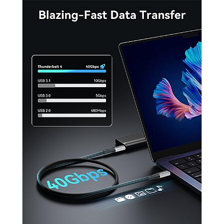 MOKiN Thunderbolt 4 Certified Cable 3.3 ft, 240W Charging, 40Gbps Data Transfer $9.99