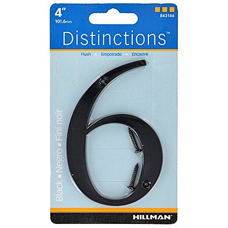 Amazon: Hillman Distinctions 4" Black Zinc Flush Mount House Number (Number 6) $1.18 + FS w/ Prime