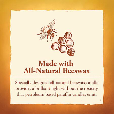 - ALL-NATURAL BEESWAX CANDLE: Specially designed all-natural beeswax candle provides a brilliant light without the toxicity that petroleum based paraffin candles emit.