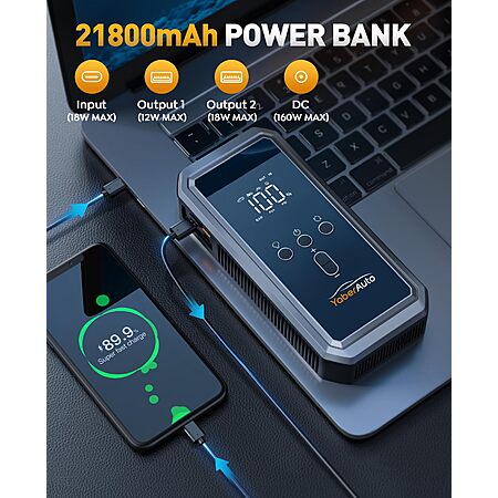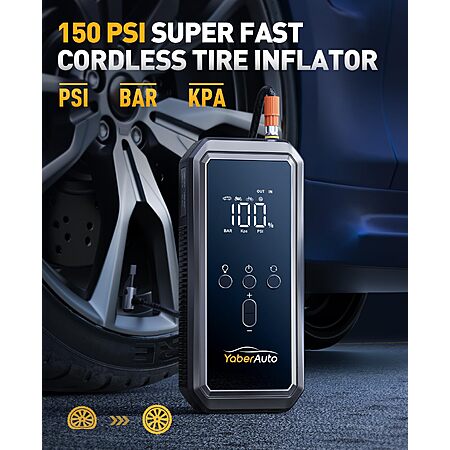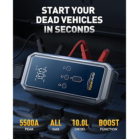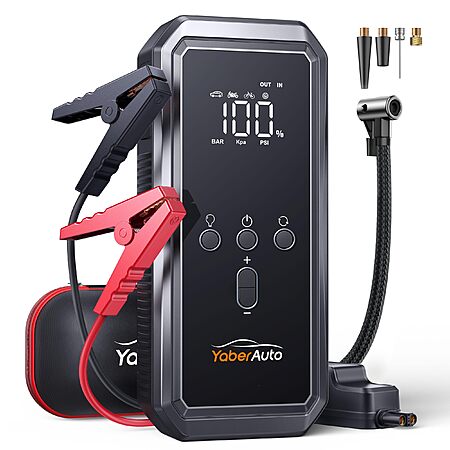 YaberAuto 9-in-1 Jump Starter 5500A with Air Compressor - $47.59