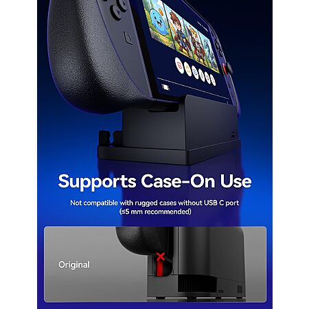 - Made for Switch 2 users who use thick protective cases and don't want to remove the case when docking. This extender cable with stand supports protective cases up to 5 cm thick, letting you charge, play, and output video while keeping your console fully protected. Ideal for case-heavy users who want a safer, more flexible docking setup