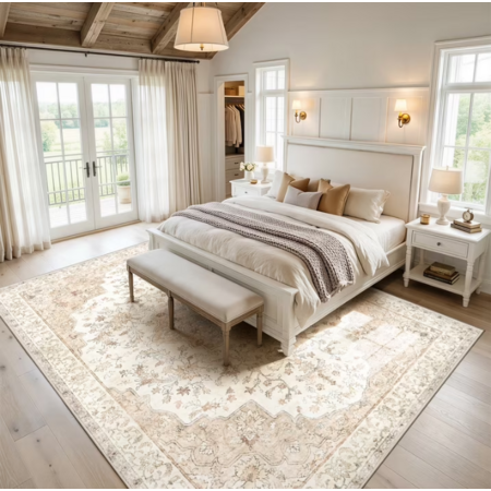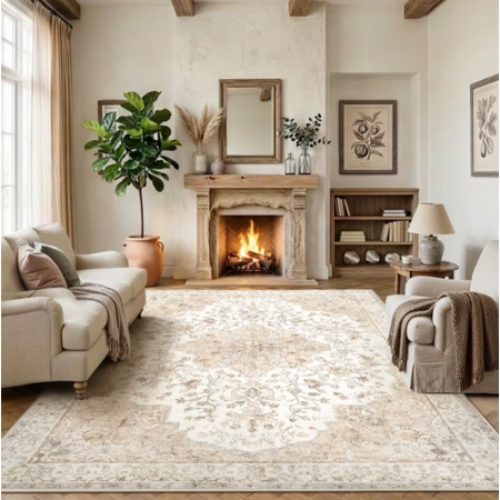 • Boho Design: Showcases a vintage floral medallion design in neutral tones, adding elegance and warmth to any decor style.