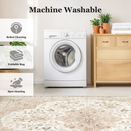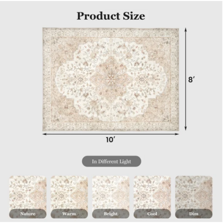 Model: CHITOOMA 8'x10' Boho Area Rugs for Living Room, Machine Washable Floral Area Rug with Non-Slip Backing, Stain Resistant Non-Shed Carpet for Bedroom, Dining Room, Dorm, Office