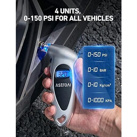 [AC] $3.79 | AstroAI 150PSI Digital Tire Pressure w/ Presta Valve Adaptor (Silver) at Amazon