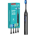 COSLUS C30 Sonic Electric Toothbrush w/ 4 Replacement Heads (Black) on sale for $9.99 - additional $4 off w/ code