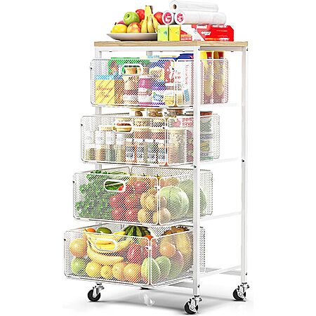 Prime Members: 4-Tier SUNALLY Metal Rolling Kitchen Cart w/ Drawers & Lockable Wheels (Black or White) on sale for $49.99 - $17.50 off when you enter the coupon code