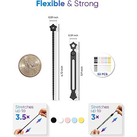 esigned with two unique star-shaped styles(5.9''L&4.6''L) to suit different bundling needs. Whether looping, locking, or wrapping, these ties adapt easily to various organizing tasks.