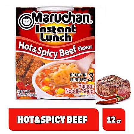 [AC] $5.44 | 12-Pack 2.25-Oz Maruchan Instant Lunch (Hot & Spicy Beef) at Amazon (45.3¢ each)
