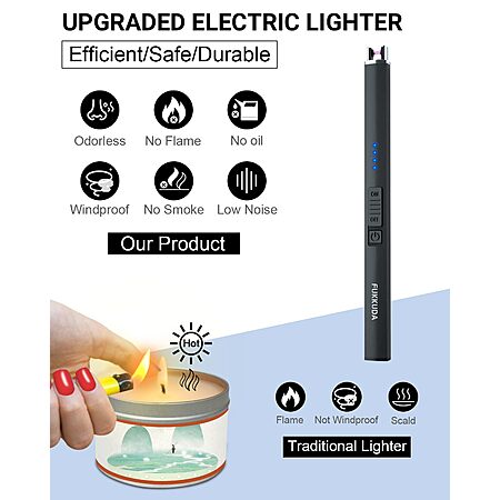 FUKKUDA Electric USB Rechargeable Arc Candle Lighter w/ Safety Switch (Obsidian Black) $6.64 + Free Shipping w/ Prime or on $35+
