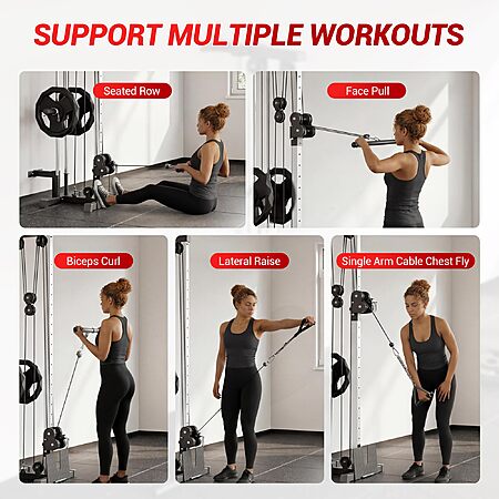Wall Mount Cable Station – Dual Pulley Cable Crossover Machine with 18 Adjustable Positions $177.99