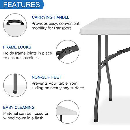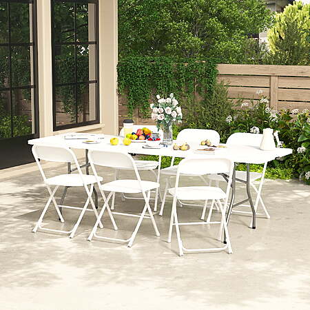 | Product Description: | Jopath 6 Foot Folding Table,White Plastic Folding Table,Built-in Handle,Indoor Outdoor Table for Picnic Party Dining Camping,White 【Foldable & Portable Table Design】This 6ft portable table measures 70.9" (L) × 27.6" (W) × 29.2" (H) -comfortably seating 6 to 8 adults. Features a half-fold tabletop with built-in handles. It weighs just 22.7 lb, making it effortless to carry and transport. When folded, it stores easily in closets, under beds, or car trunks-perfect for transitioning from indoor meals to outdoor adventures. A true space-saving portable table for all your needs. 【Versatile Indoor & Outdoor Use】Whether you need a temporary portable table for parties, picnics, weddings, or camping, this foldable table delivers. Its sleek white surface complements any decor and works great with tablecloths, transforming into a stylish display or dining table for gatherings. Perfect as an outdoor table for cookouts or a foldable dining table for extra indoor seating. Use it as a buffet station, crafting workspace, or temporary work desk- the possibilities are endless! 【Heavy Duty Construction】Built with reinforced steel legs and a high-density plastic tabletop, this table won’t wobble under pressure! It holds up to 100 lbs, making it ideal for camp table, buffet spreads, wedding desserts, camping gear, or workshop projects. The powder-coated steel frame prevents rust, while the thick plastic surface resists cracks and dents, making it suitable for both utility and dining use. 【Easy to Clean & Set Up in Seconds】This white folding table features a smooth, stain-resistant surface that wipes clean instantly-just use a damp cloth! No tools are needed for assembly: simply unfold, lock the sturdy steel legs into place, and it’s ready for use. The weather-resistant plastic won’t warp or fade, making it perfect for outdoor picnics table, BBQs, or indoor parties. A hassle-free, time-saving design that’s as durable as it is convenient! 【Purchase Folding Table with Confidence】Designed for reliability and everyday use, our folding table offers sturdy, wobble-free performance for events big and small. Should you have any questions or need assistance, our customer service team is ready to provide support. We are committed to ensuring you have a positive experience with your purchase. |