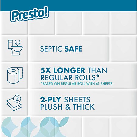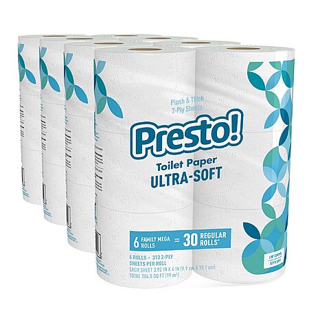 Presto! 2-Ply Ultra-Soft Toilet Paper, 24 Family Mega Rolls = 120 Regular Rolls, 308 Sheets, 4 Packs of 6 - Amazon Business Accounts ONLY S&S $15.83