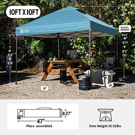 $107.09: CROWN SHADES 10x10 Pop Up Canopy Tent, Cyan Blue