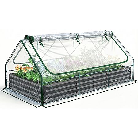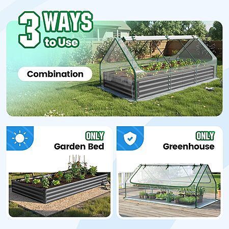 $79.99: Quictent Raised Garden Bed Galvanized Raised Beds for Gardening Vegetables with Cover, 8 x 4 x 1 ft Metal Planter Box