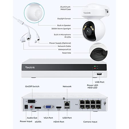 Reolink 4K Security Camera System with PT Auto-Tracking 4K PoE Cameras Home Surveillance Wired Outdoo Spotlights & 2-Way Talk, 8CH NVR 2TB HDD, RLK8-800PT4 $594.99