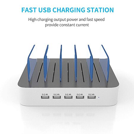 MSTJRY Charging Station for Multiple Devices : 5 Port Multi USB-A Charger Stations Multi-Device Organizer Charging Dock (7 Short Cables Included) $28.48