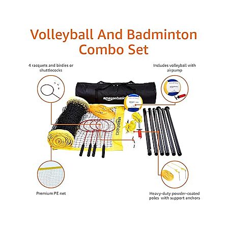 $29.99: Amazon Basics Portable Outdoor Volleyball and Badminton Combo Set with Sturdy Poles and Storage Bag at Woot!