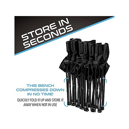 - STORE IN SECONDS: This bench compresses down in no time so you can quickly fold it up and store it away when not in use