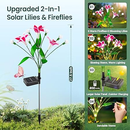 [Prime] $19.99* | 4-Pk WdtPro 2-in-1 Solar Lilies Firefly Swaying Lights at Amazon