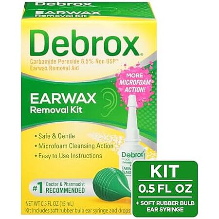 Model: Debrox Earwax Removal Kit, Includes Drops and Ear Syringe Bulb, 0.5 Oz