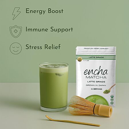 Model: Encha Latte Grade Matcha Powder - First Harvest Organic Unsweetened Matcha Green Tea, From Uji, Japan (30G/1.06 Ounce) Premium Powder for matcha latte, smoothie | Caffeine, L-Theanine