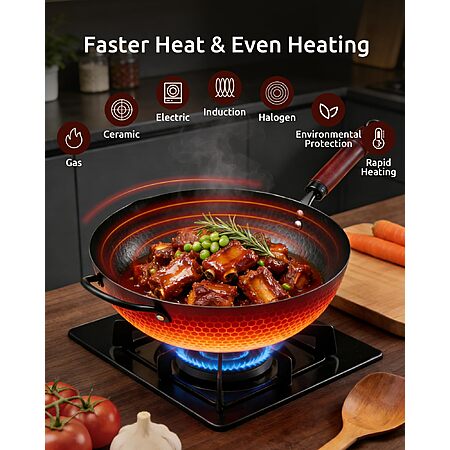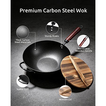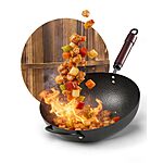 Prime: 13" FGJ Carbon Steel Pre-Seasoned Flat Bottom Wok w/ Wood Lid (Non-Coated) $20.39 + Free Shipping w/ Prime or on $35+