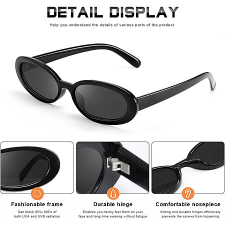 2-Pack DANAMY Women's Retro Small Oval Sunglasses (White+Black) $5.98 + Free Shipping w/ Prime or on $35+