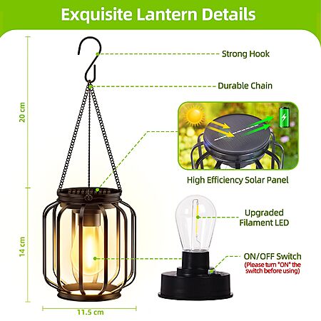 Amazon.com: Solar Hanging Lanterns Outdoor Waterproof: 4 Pack Metal Solar-Powered Lights with Hook, Bright Warm Lantern Decor for Outside, Classic Outdoor Lighting for Yard Garden Patio Porch Balcony Decorations : Tools & Home Improvement