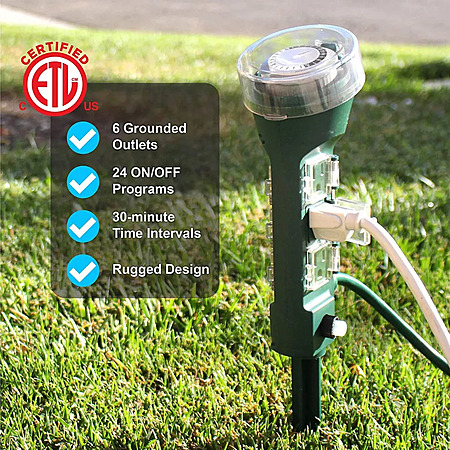 2-Pack: ClearPower Outdoor Power Strip Yard Stake Programmable Mechanical Timer $17.99 + Free Shipping
