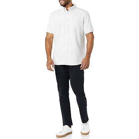 Amazon Essentials Men's Slim-Fit Short Sleeve Stretch Oxford Shirt with Pocket