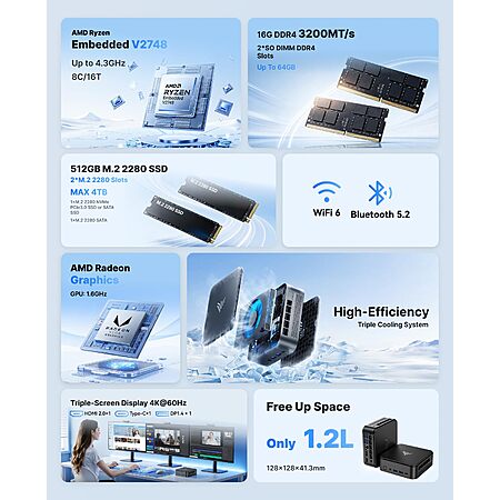 Prime: KAMRUI E3B Mini PC: Ryzen V2748 (8C/16T), 16GB DDR4, 512GB SSD, Win 11 Pro $307.12