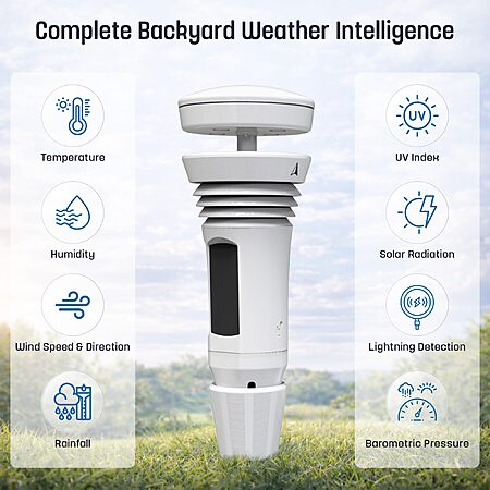 - Complete Outdoor Weather Monitoring – This advanced weather station with rain gauge tracks temperature, humidity, barometric pressure, wind speed and direction, dew point, solar radiation, UV index, lightning strikes, rainfall, and more - all from a single device.