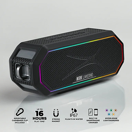 Altec Lansing Hydra Jolt 2.0 Everything Proof Wireless Magnetic Portable Bluetooth Speaker, Black $29