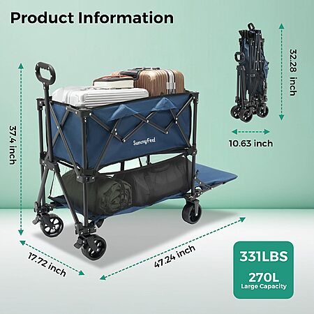SUNNYFEEL Lightweight 47''L Double Decker Wagon for Sport, 270L - $33.59