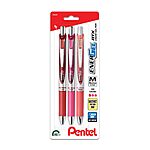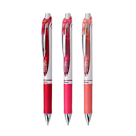3-Pack 0.7mm Pentel EnerGel Deluxe RTX Gel Pens (Red, Pink and Coral Ink) for
