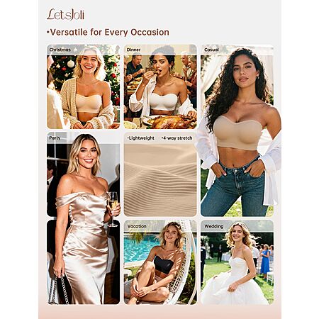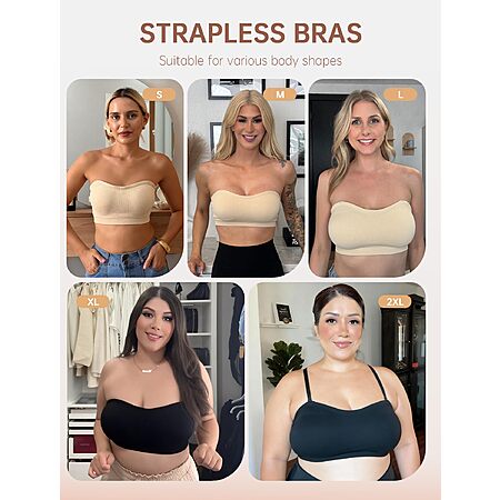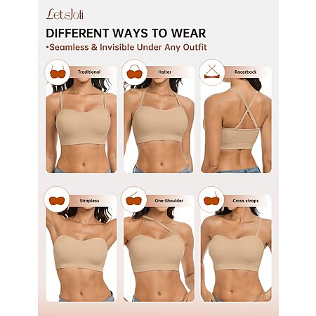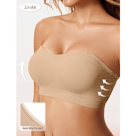 LetsJoli Push Up Strapless Bras for Women Supportive Bandeau Bra Non Slip Wireless No Underwire Padded Tube Bra $18.98