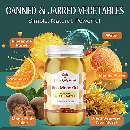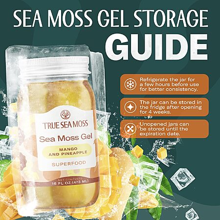 [S&S] TrueSeaMoss Sea Moss Gel – Made in USA – Wildcrafted Seamoss, Fruits & Jarred Vegetables – Mango/Pineapple, Pack of 1 (Labels may Vary) $26.77