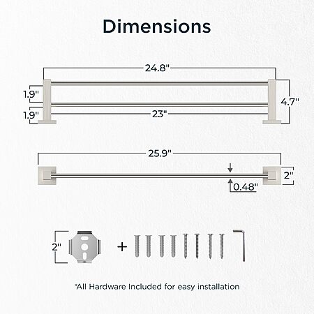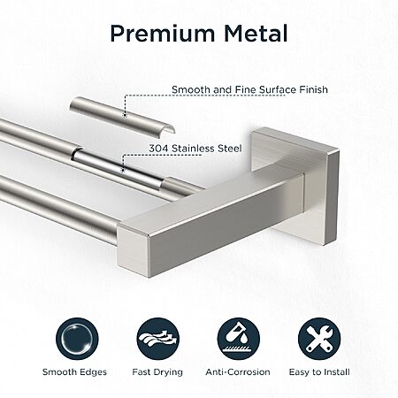 FORIOUS 24" Double Towel Bar Towel Racks (Brushed Nickel or Matte Black) $12.58 + Free Shipping w/ Prime or on $35+