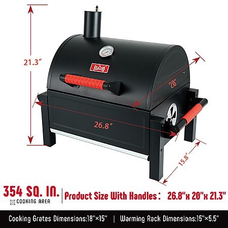 Feasto Portable Charcoal BBQ Grills with Cast Iron Grates 354 Sq. In Cooking Area, for Outdoor Camping and Picnic, Black, L26.8''x W20''x H21.3''