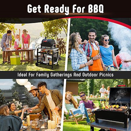 Feasto Portable Charcoal BBQ Grills with Cast Iron Grates 354 Sq. In
