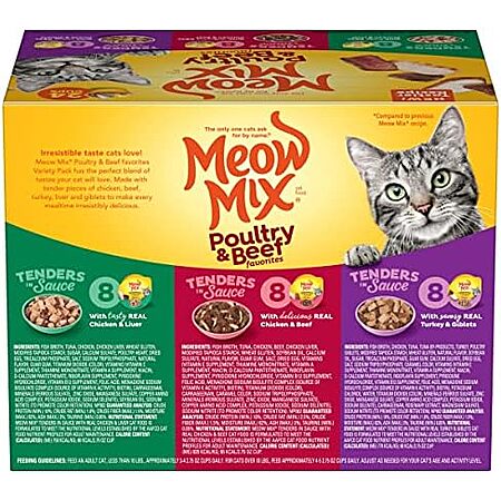 [SnS, AC] $5.78* | 24-Pack 2.75-Oz Meow Mix Tenders in Sauce Wet Cat Food (Variety Pack: Poultry & Beef) at Amazon