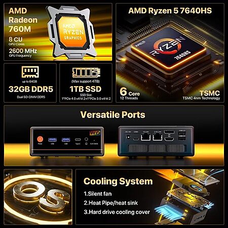 Trycoo Mini PC: Ryzen 5 7640HS, 32GB DDR5, 1TB PCIe SSD, USB4, 2.5G Lan, Win11P @ $476 + F/S