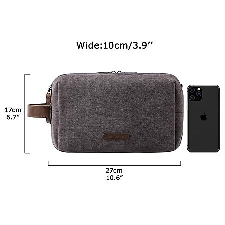 BAGSMART Toiletry Bag for Men, Canvas Travel Toiletry Organizer Dopp Kit Water-resistant Shaving Bag for Toiletries Accessories,Grey-Medium $14.99