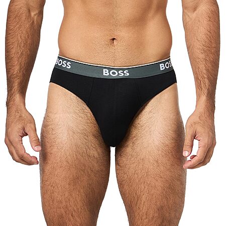 BOSS, 3-Pack Bold Logo Solid Briefs, olive/black/peacock, L $11.99