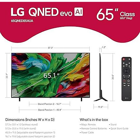$599.99* | 65″ LG QNED evo AI QNED85A Series Mini LED 4K Smart TV (65QNED85AUA, 2025) at Amazon